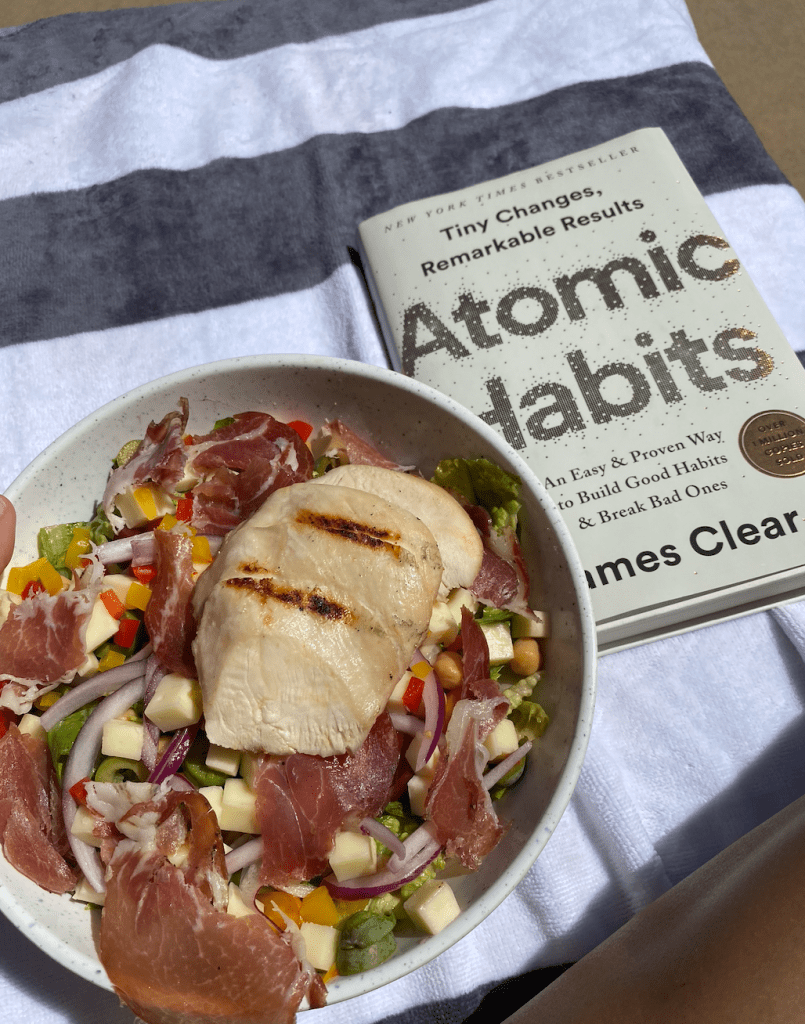 One of the books that really influenced my mindset and shifts toward a healthy lifestyle was the book Atomic Habits. I read this book around 3 years ago and it’s still one of my favorites (and still influential in my life). One of the main ideas is to focus on creating systems in order to accomplish goals. I had a deeply negative dialogue toward myself (still working on it tbh) when I was reading this book it inspired me to create change toward a sustainable healthy lifestyle. I’d been interested in health for a couple of years prior, but drifted down a weird health rabbit hole toward the beginning of high school. SO – I knew internally I needed to make a change and this book was definitely a motivator .